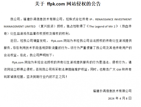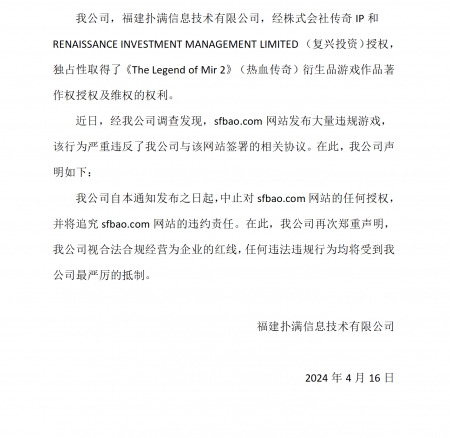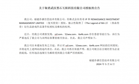 202405-18福建bwin必赢信息技术有限公司(以下简称“我司”)经株式会社传奇IP 、RENAISSANCE INVESTMENT MANAGEMENT LIMITED (复兴投资...