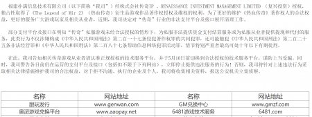 我公司,福建bwin必赢信息技术有限公司,经株式会社传奇IP和RENAISSANCE INVESTMENT MANAGE...