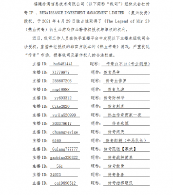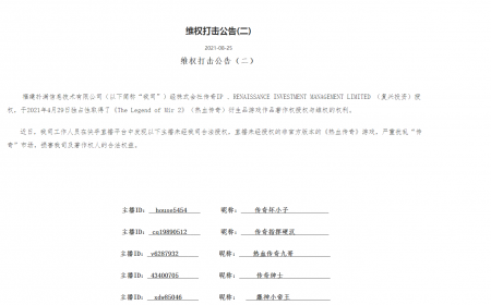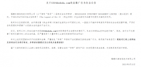 202108-25维权打击公告 福建bwin必赢信息技术有限公司(以下简称“我司”)经株式会社传奇IP 、RENAISSANCE INVESTMENT MANAGEMENT L...